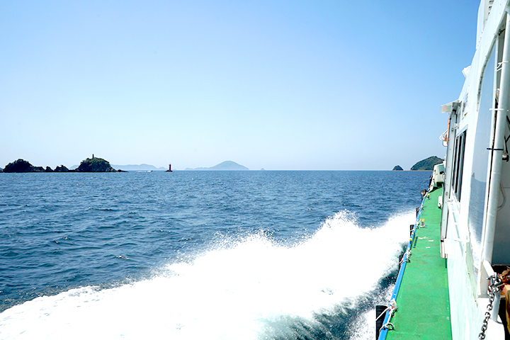 島を過ぎてすぐ、左手に見える無人島(粟ノ小島)を要チェック。ライオンが左向きに寝ているように見えるはず。