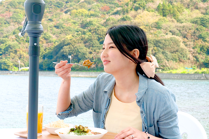 大島テラスの「しまカフェ」でも食事(予約制メニューもあり)ができます。事前にお問合せください。