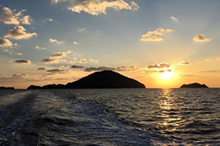 11月上旬〜12月下旬にかけては帰りの船でとてもキレイな夕日がみえることも。