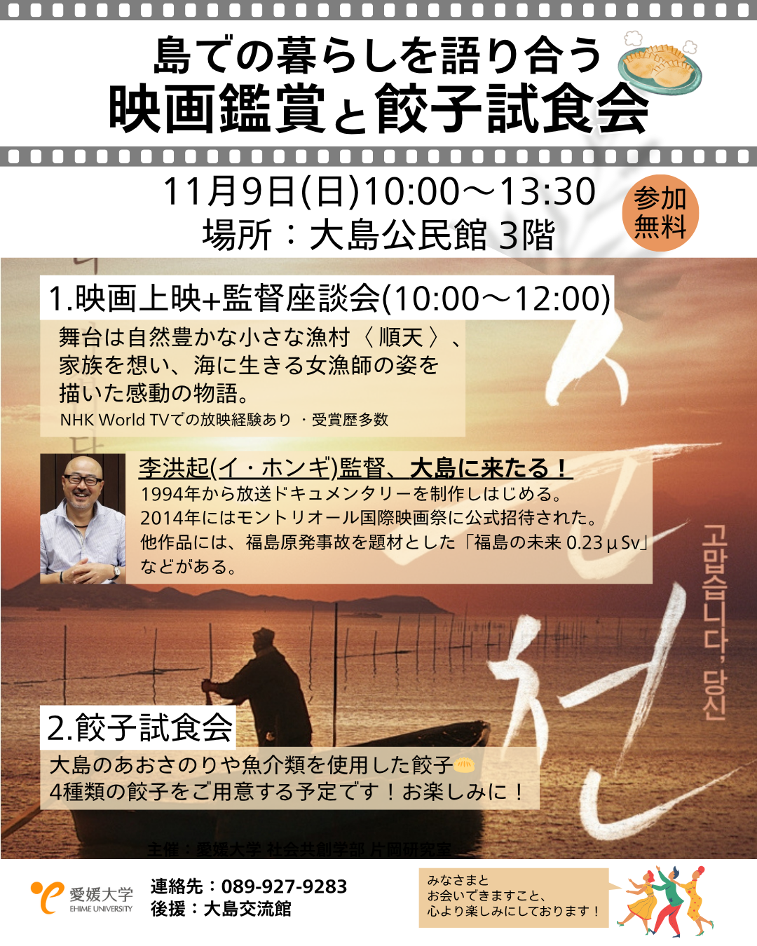 11月9日(日)に愛媛大学さん主催にて映画上映会と映画作品の監督との座談会が開催されます。