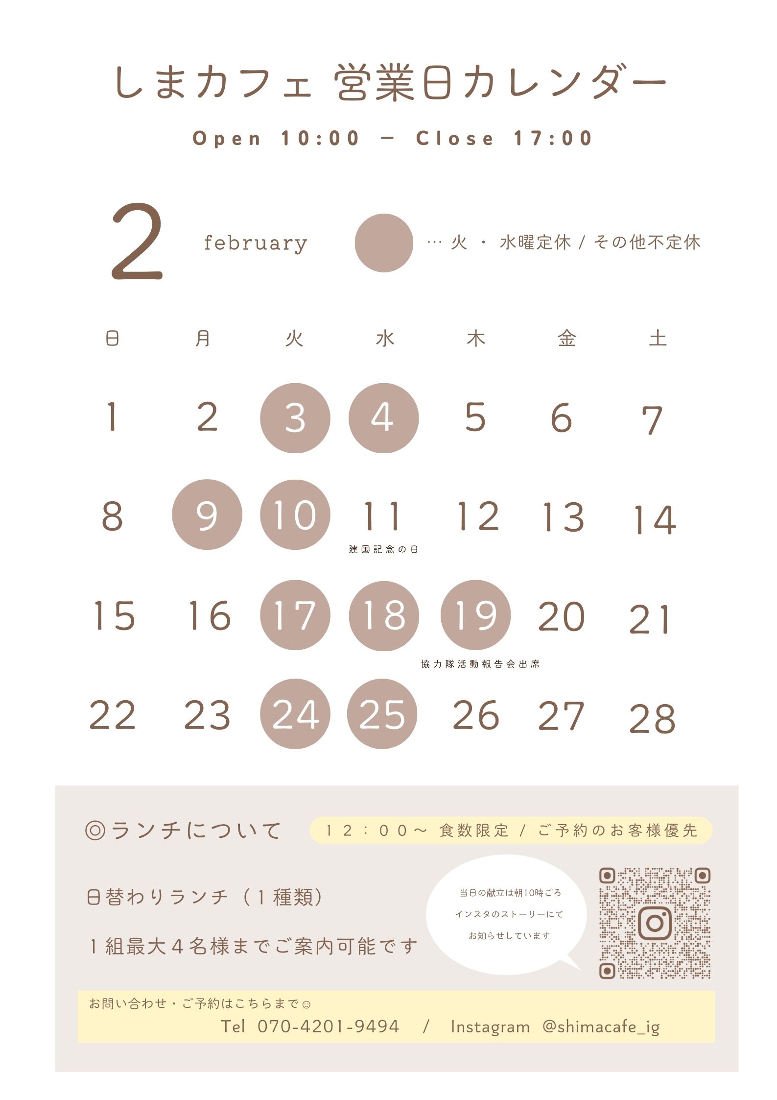 しまカフェ2月営業日のご案内